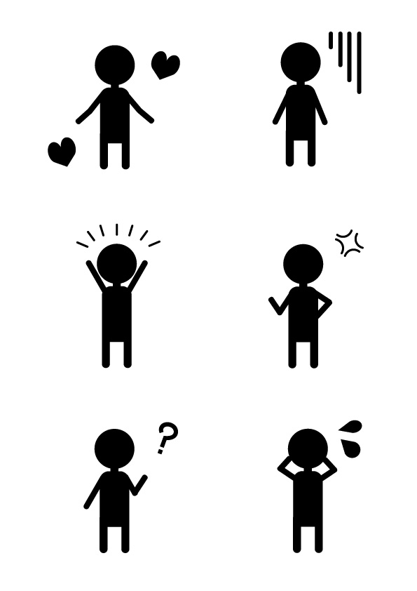 「ピクトグラム」を検索するとスポーツなど動きを表すものが多くヒットしたので、感情を表すピクトグラムを作成してみました。