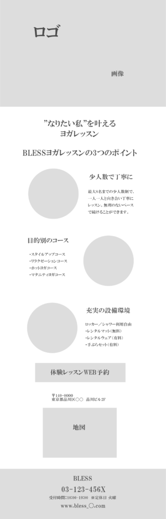 事前に下書きしたノートを見ながら、PhotoshopでLPのワイヤーフレームを作りました。
