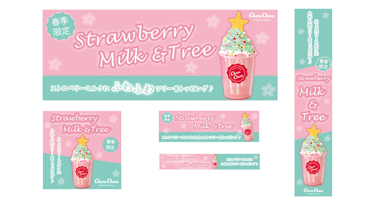 PhotoshopでGIFアニメーション制作ドーナツ屋さん(架空)のバナー広告を作成し、バナー広告に動きをつける形でアニメーションを作成してみました。Photoshop(ツールのウィンドウ → タイム...