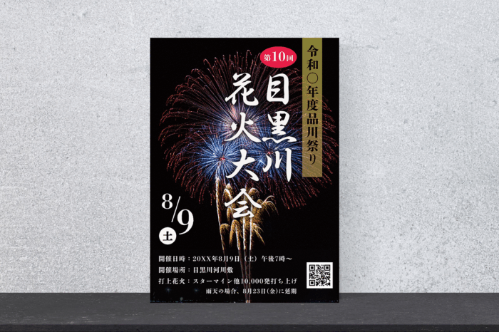 ・花火を全面に出して、花火大会の文字を花火に合うように和の雰囲気で仕上げました。